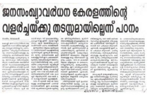 ജനസംഖ്യാവർധന കേരളത്തിന്റെ വളർച്ചയ്ക്കു തടസ്സമായില്ലെന്ന് പഠനം CSES INDIA 14 years ago This report on CSES study was published in Deshabhimani on 20.07.2011