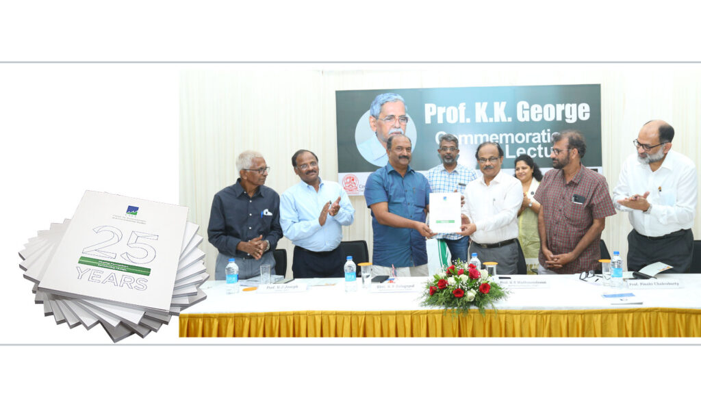 A document chronicling the “25-year Journey of CSES” was released on 1st October, 2022. The document was handed over by Sri. K N Balagopal, Honorable Minister for Finance, Government of Kerala to Prof. K N Madhusoodanan, Honorable Vice-Chancellor, CUSAT. The document showcases the journey of CSES; milestones, 25 major studies and 25 major events that shaped CSES. It also showcases programmes designed to mould young researchers, which includes our internship programme, Young Scholars’ Colloquy and other outreach engagements. The document shares snapshots of our work in the field and of life at CSES. We are also obliged to many of our well-wishers, former clients, former staff and associates, who sent in their experiences of associating with CSES.